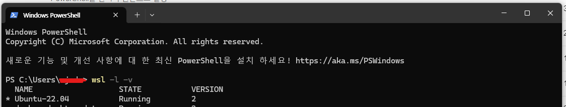 위와 같이 wsl2가 설치된 것을 확인하면 끝입니다!