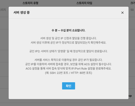 그 다음 최종 확인을 거치고 생성을 누르면 시간이 좀 걸린다는 팝업창이 뜹니다.